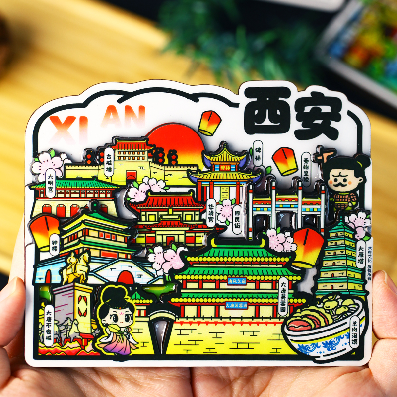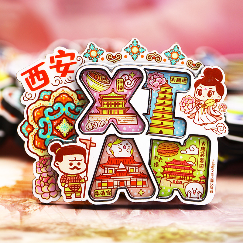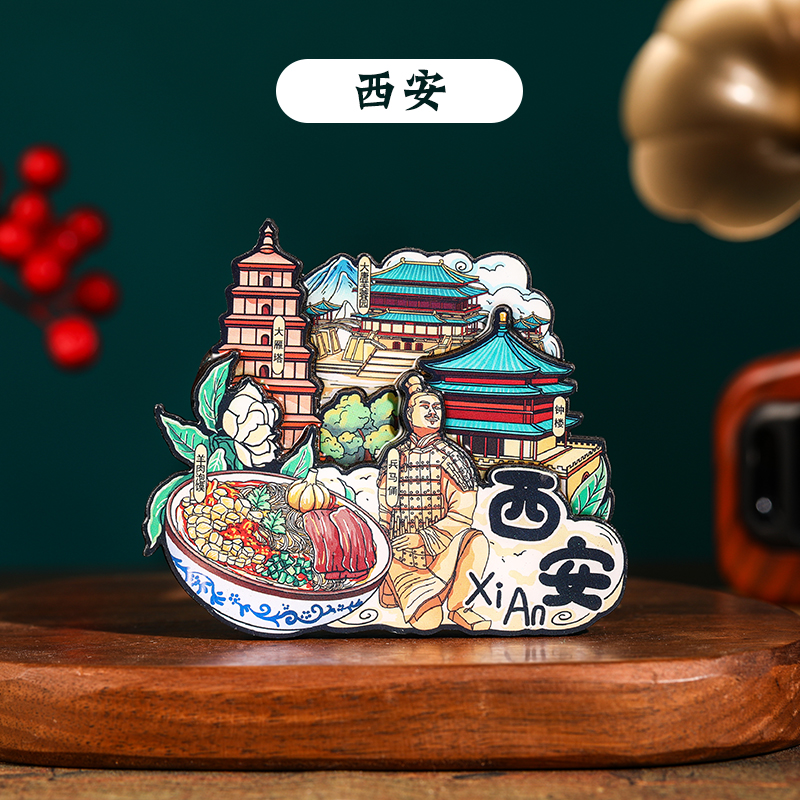 陕西西安流沙文创冰箱贴中国城市金属烤漆国风国潮立体冰箱贴定制