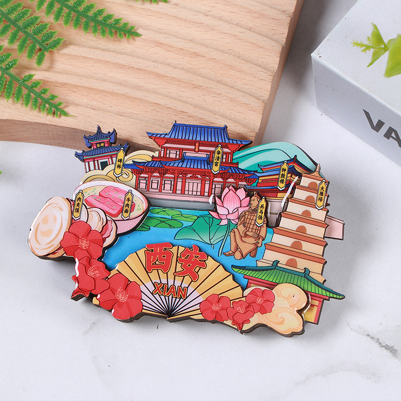 【西安】中国原创旅游冰箱贴陕西西安城市纪念品国潮木质磁力吸贴