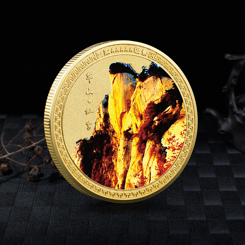 华山纪念币金属彩色喷绘景区纪念章旅游景点