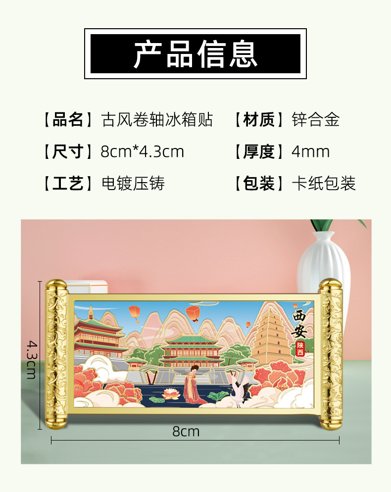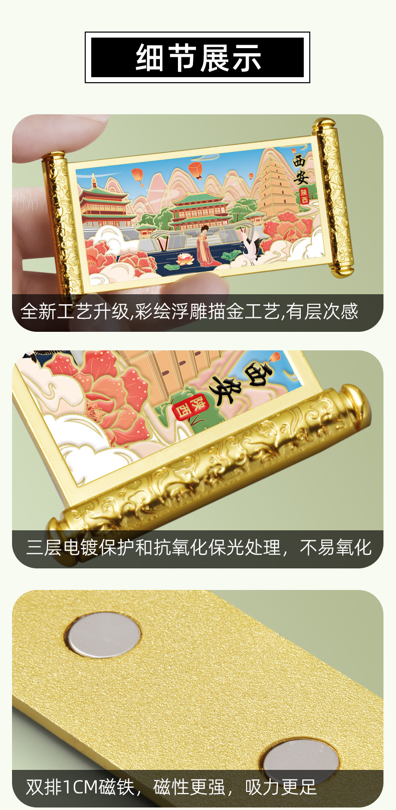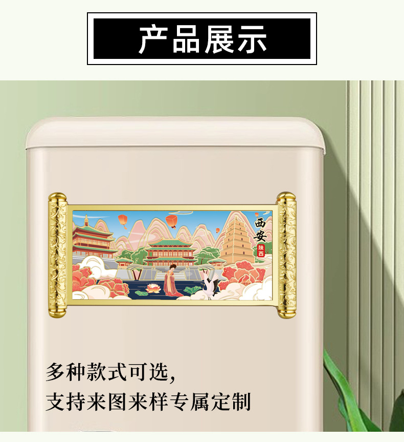 西安卷轴冰箱贴景区热卖纪念品陕西文创小礼品创意工艺品城市印象