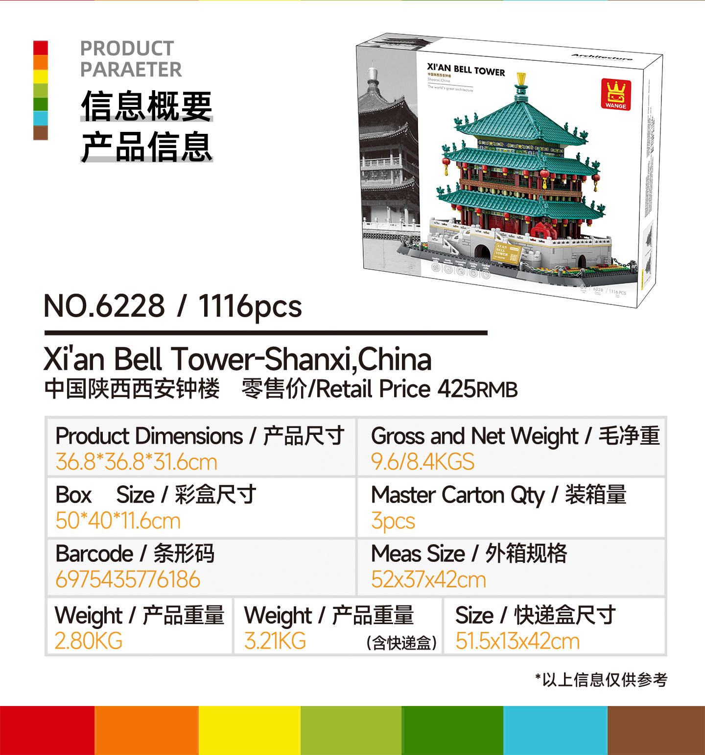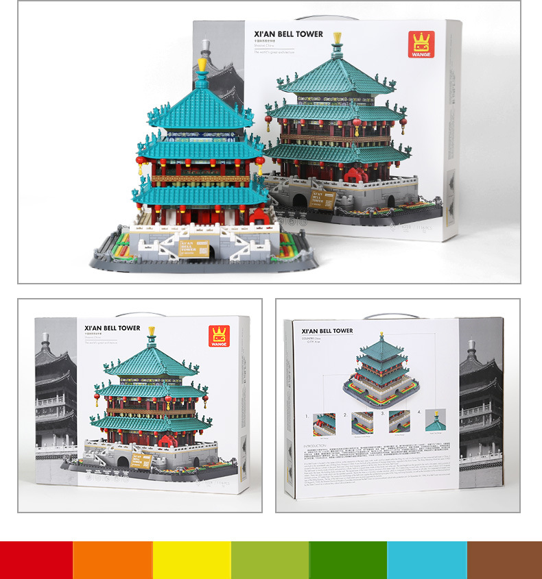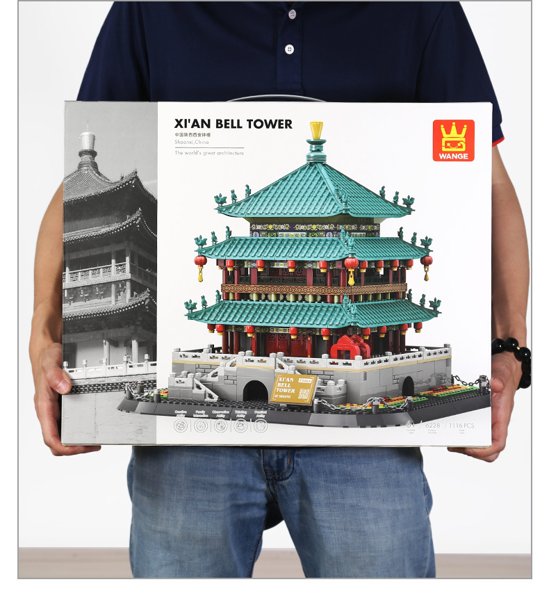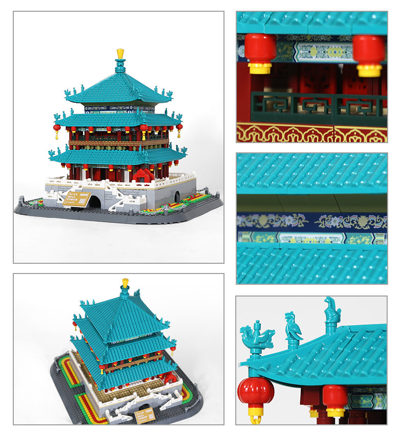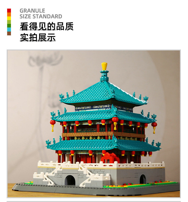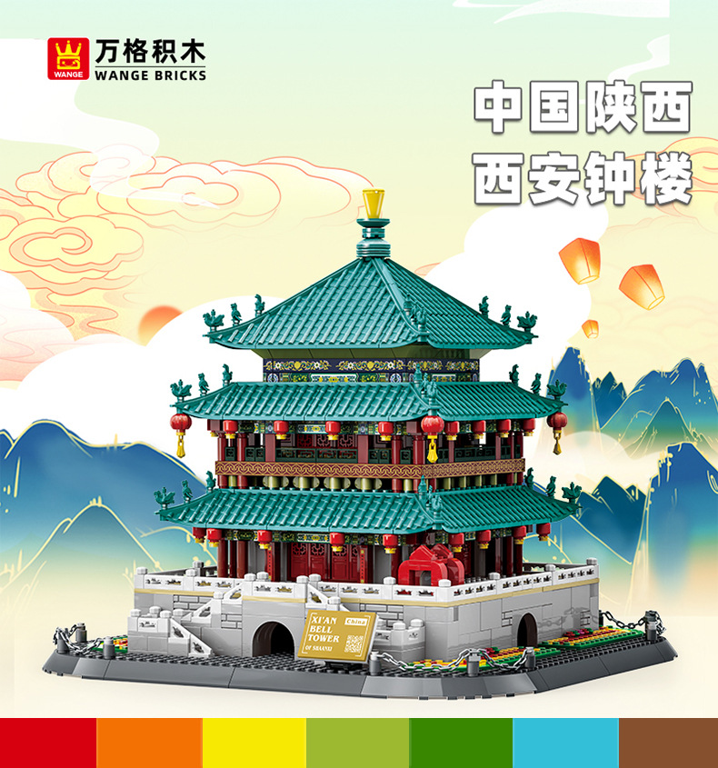 万格积木中国陕西西安钟楼国产小颗粒拼装积木国风建筑模型6228