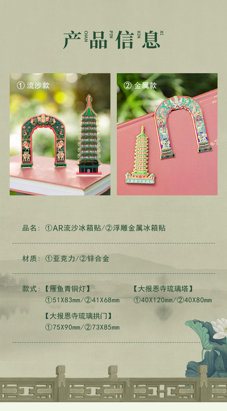 陕西西安流沙文创冰箱贴中国城市金属烤漆国风国潮立体冰箱贴定制