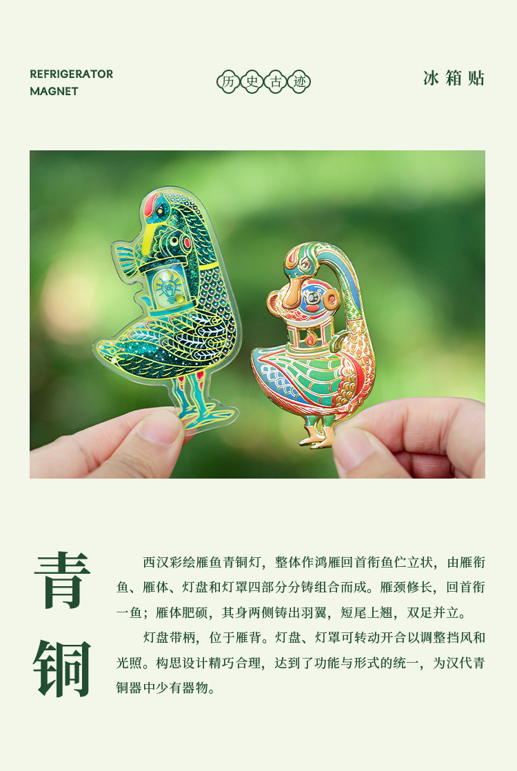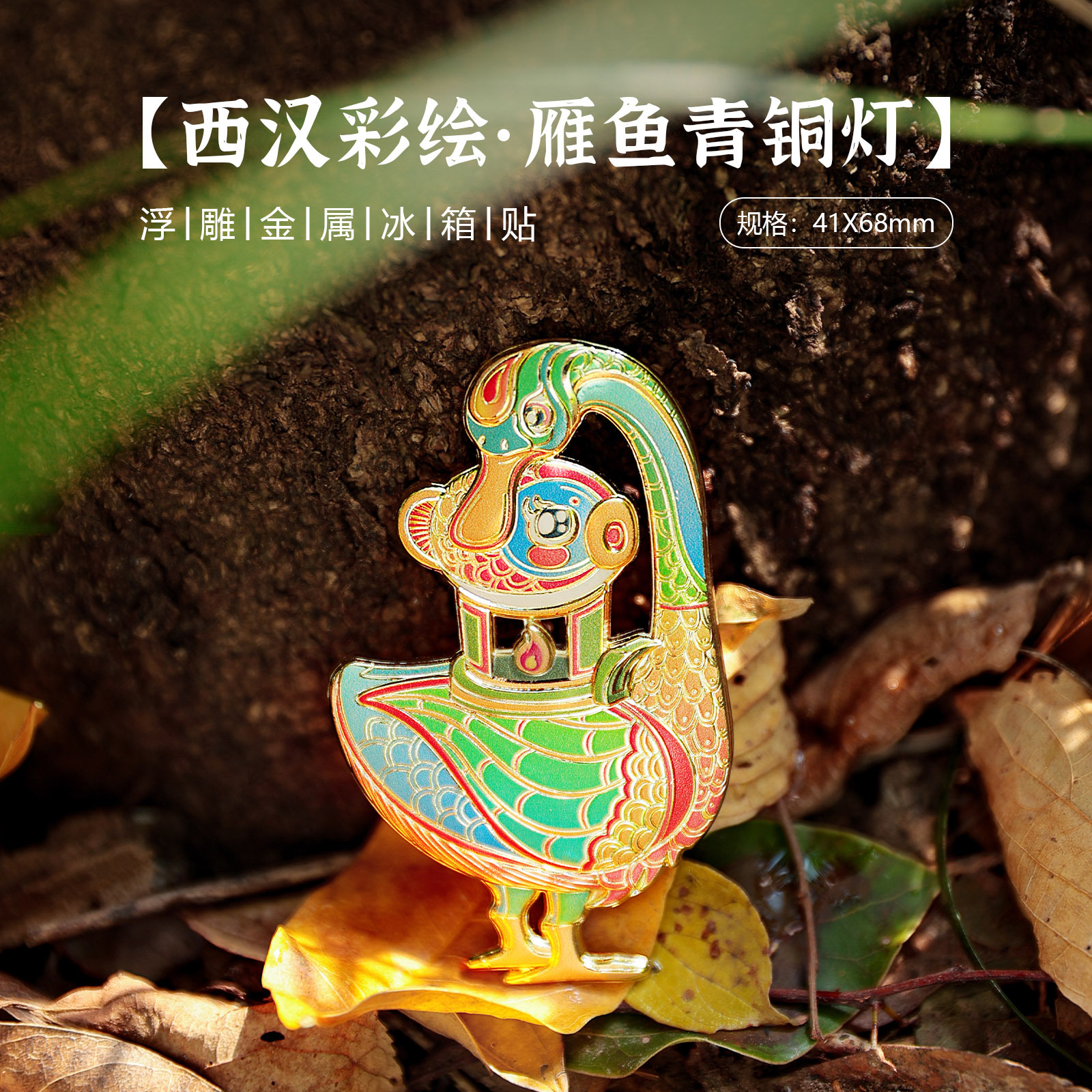 陕西文创雁鱼铜灯冰箱贴发光的磁吸创意冰箱磁贴礼盒装西安博物馆