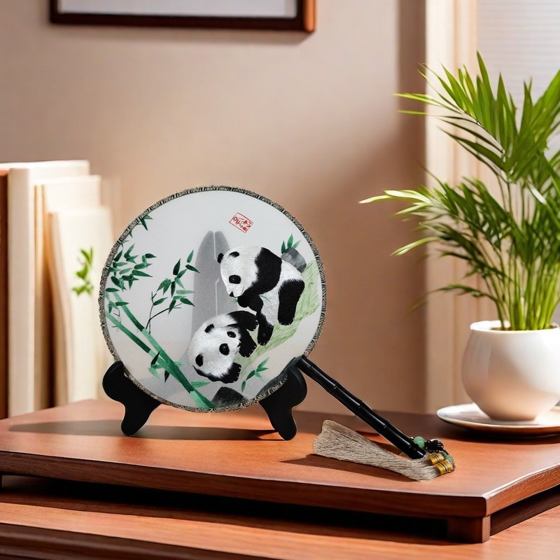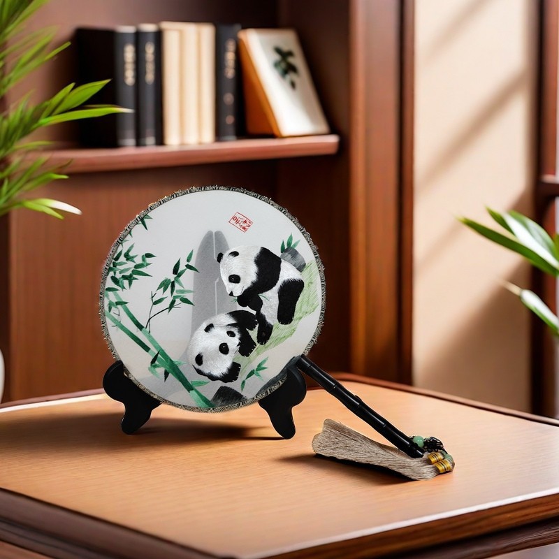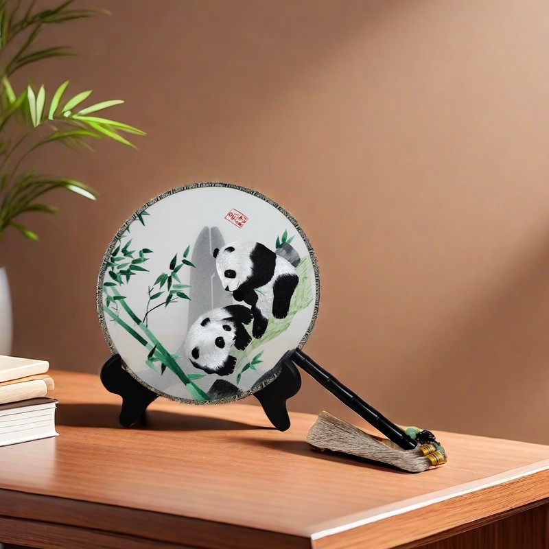 成都特色礼品蜀绣手工双面绣团扇子中国风刺绣礼物