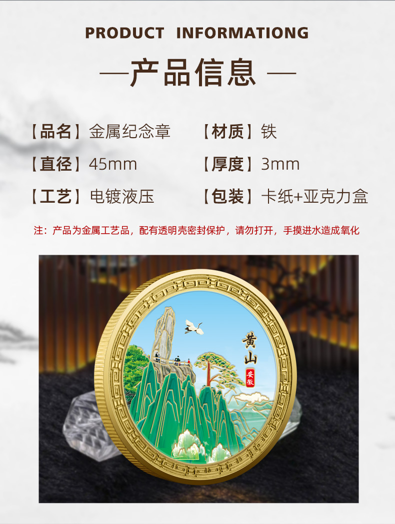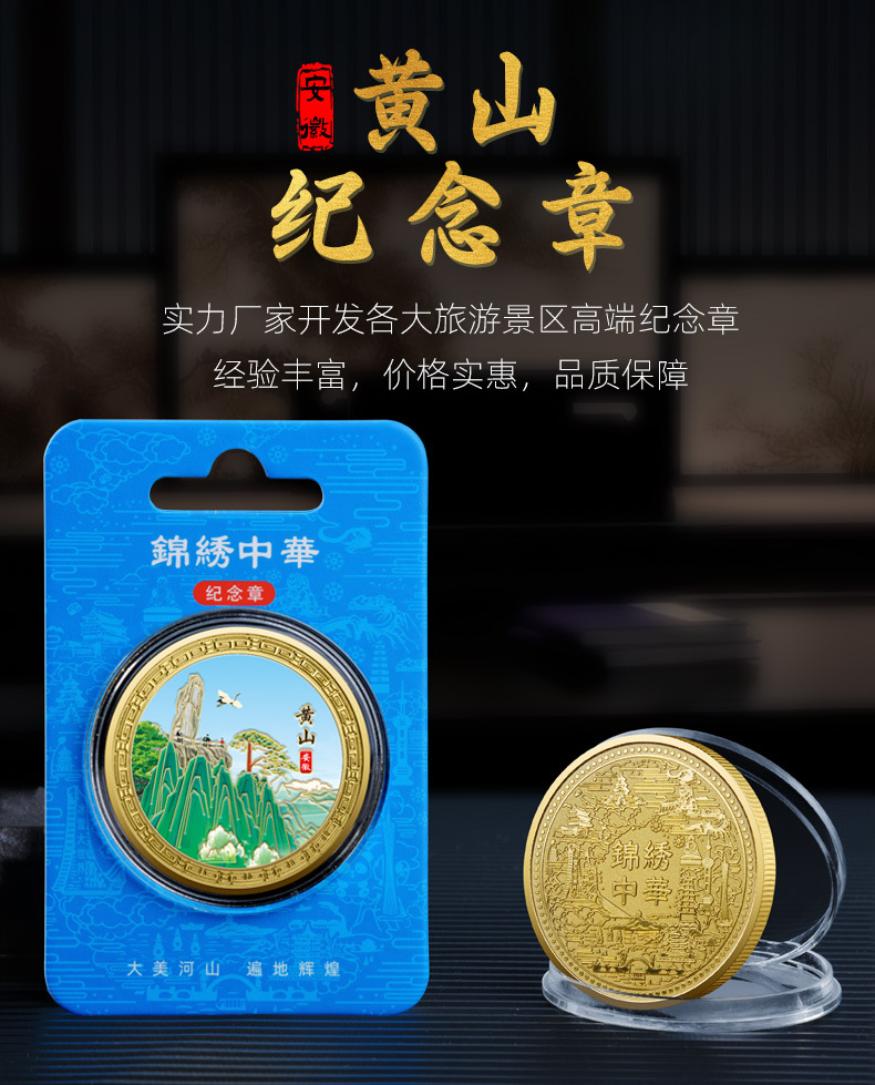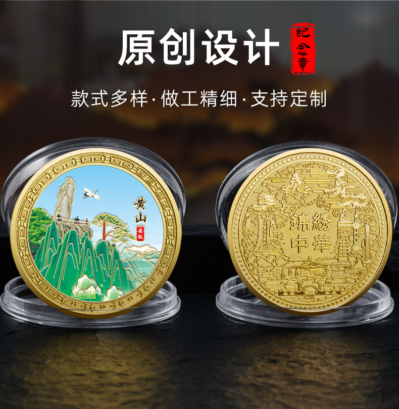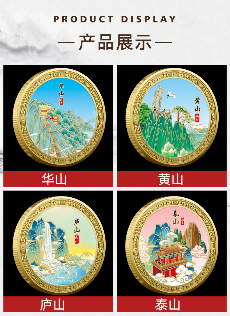 庐山黄山泰山华山金属浮雕彩印纪念章热门城市旅游纪念币热销文创