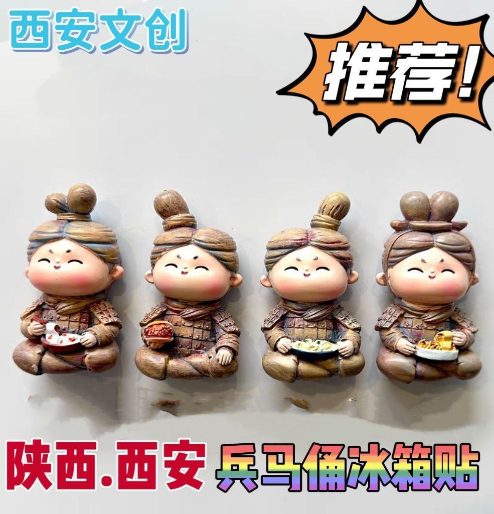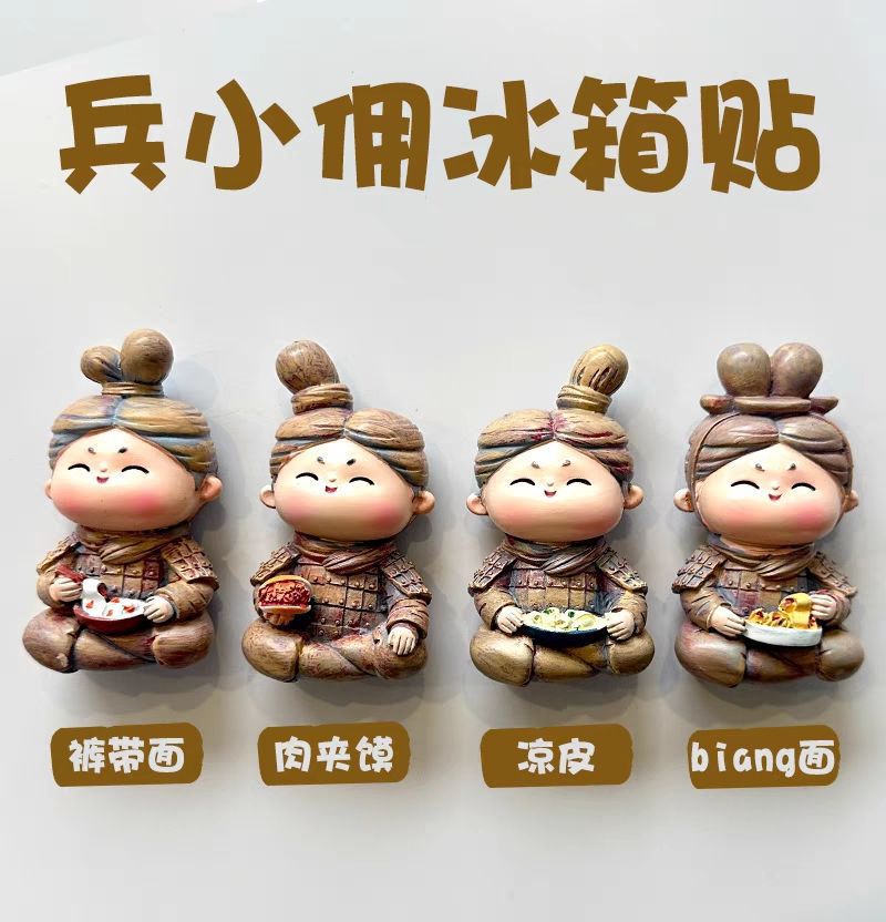 西安卡通Q版兵马俑冰箱贴秦始皇陵博物馆美食兵小佣磁贴文创