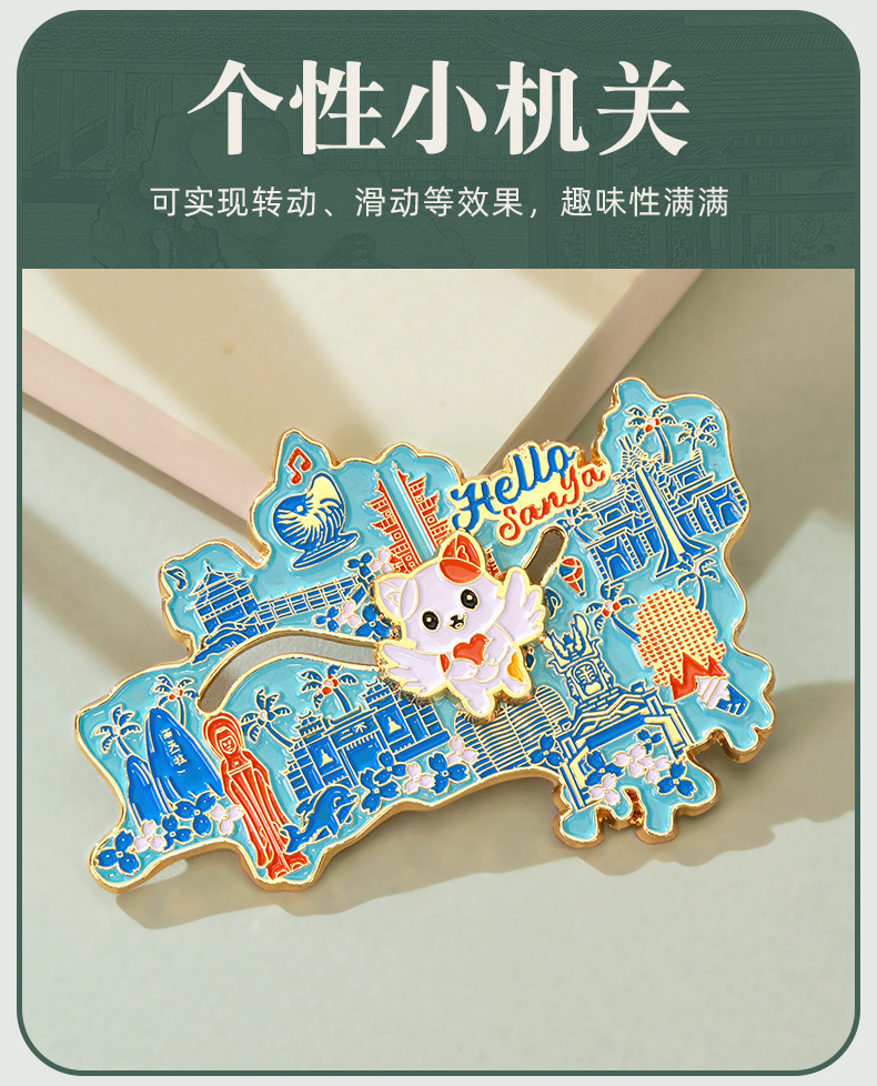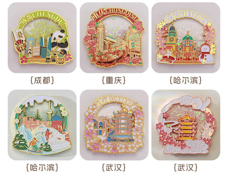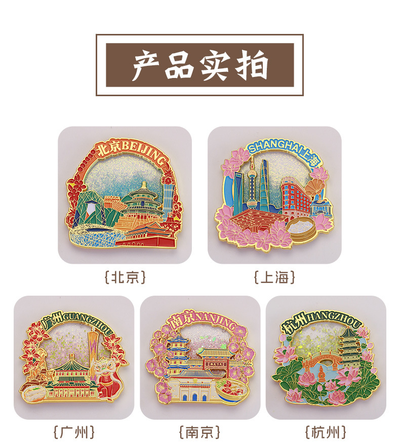 陕西西安流沙文创冰箱贴中国城市金属烤漆国风国潮立体冰箱贴定制